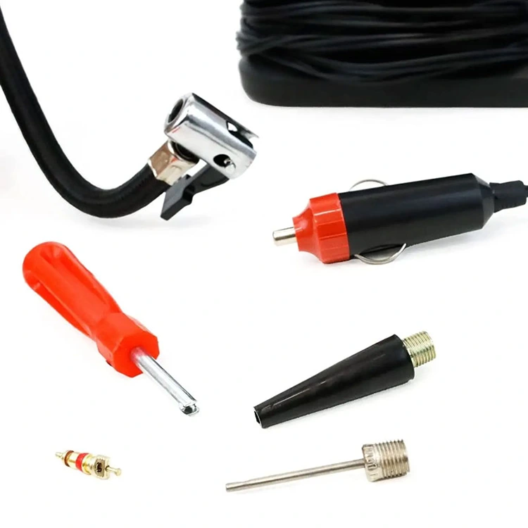 3.Podłącz kompresor, zasil go gniazdkiem 12 V, napompuj do zalecanego ciśnienia, odczytując metalowy manometr.