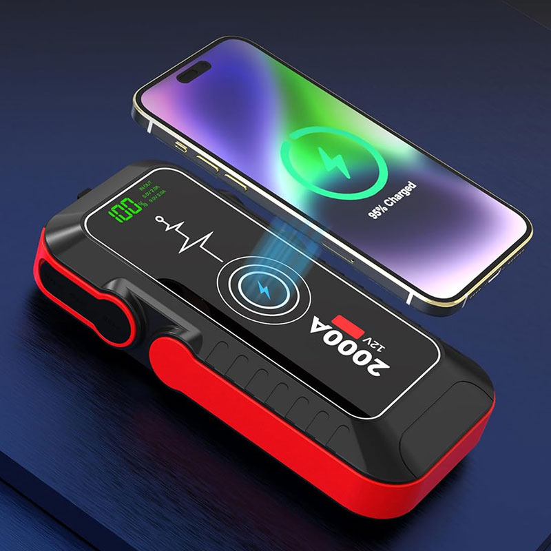 To urządzenie do awaryjnego uruchamiania akumulatora samochodowego łączy w sobie moc i przenośność dla potrzeb ładowania samochodowego i cyfrowego. Jego akumulator litowo-jonowy o pojemności 16000 mAh obsługuje prąd rozruchowy 800 A, umożliwiając szybkie odzyskiwanie rozładowanych akumulatorów bez polegania na zewnętrznym zasilaniu. Wejście typu C (5V-2A/9V-2A) i wyjście USB (5V-2A/9V-2A) zapewniają szybkie ładowanie telefonów, laptopów i aparatów fotograficznych. Zaprojektowany z kompaktowym korpusem o wymiarach 195 x 90 x 40 mm (masa netto 650 g), łatwo mieści się w schowkach na rękawiczki lub w zestawach narzędzi. Zintegrowana latarka LED oferuje trzy tryby oświetlenia awaryjnego (stały, stroboskopowy, SOS).
