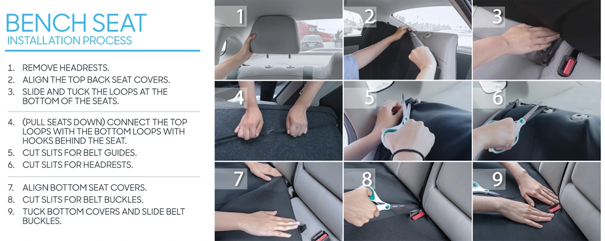 Pokrycie ponad 90%: Pasuje do większości samochodów osobowych, ciężarówek, samochodów dostawczych i SUV-ów z regulowanymi/zdejmowanymi zagłówkami.