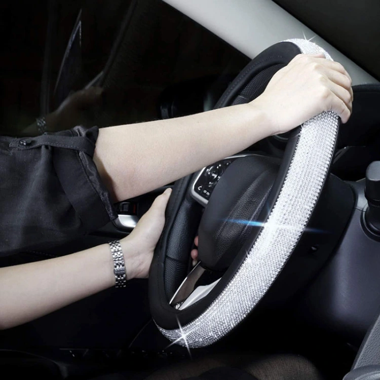 Świetne uczucie dotyku: diamentowa osłona kierownicy z kryształowymi kryształkami delikatnie masuje dłoń i łagodzi zmęczenie podczas jazdy, zapewniając luksusowy dotyk i dotyk.