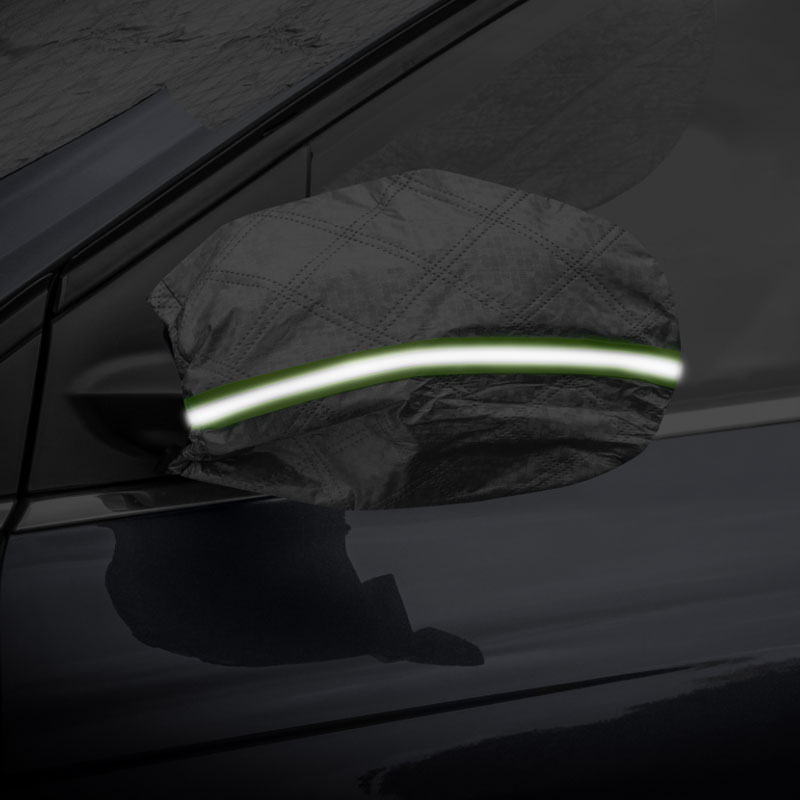 Funkcje bezpieczeństwa śniegoodpornego pokrowca na samochód: Kieszenie lusterek mają odblaskowe paski, które ułatwiają widoczność samochodu w ciemności lub śniegu, zmniejszając ryzyko na parkingach.