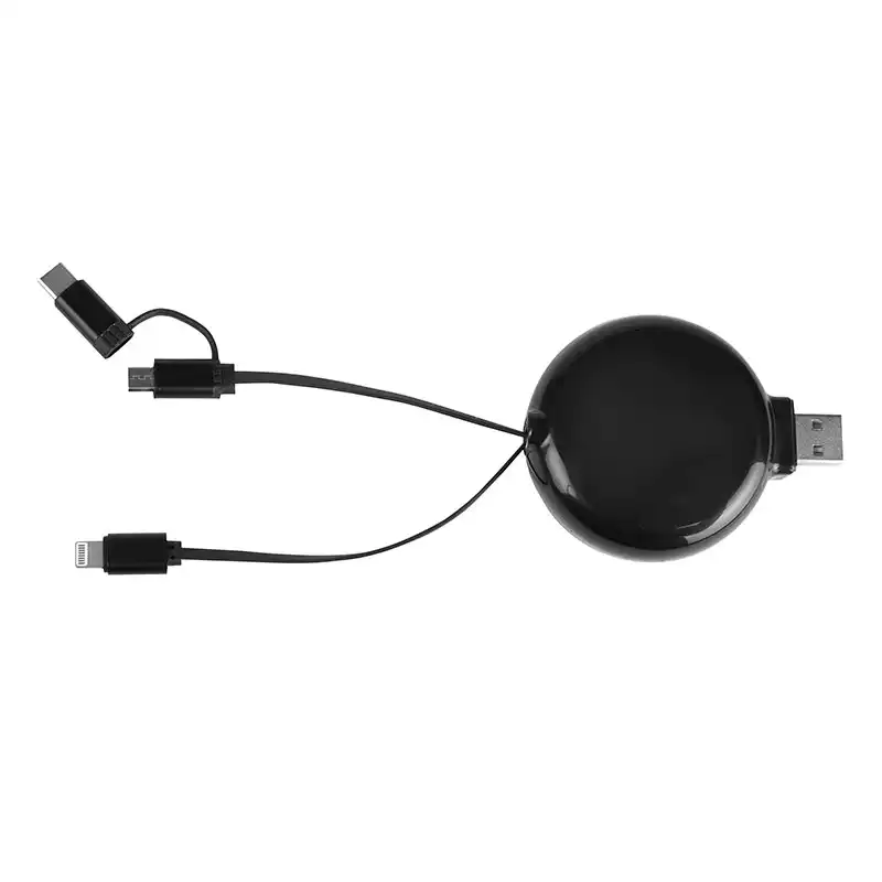 Wszechstronne rozwiązanie 3 w 1 ze zintegrowanymi złączami Lightning, Micro-USB i USB-C na jednej zwijanej szpuli dla maksymalnej kompatybilności.