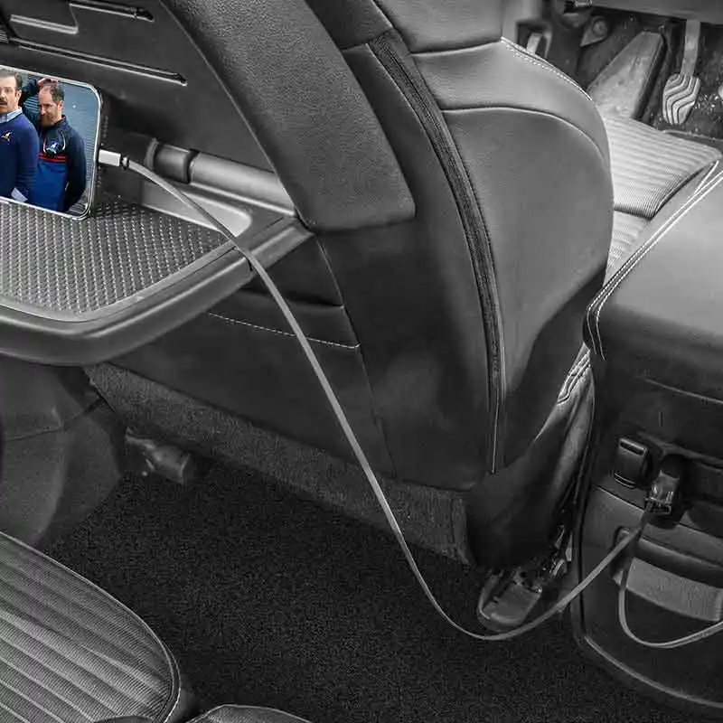 Obszerny, zwijany kabel o długości 80 cm zapewnia wygodne korzystanie z urządzenia nawet z tylnych siedzeń większości pojazdów.